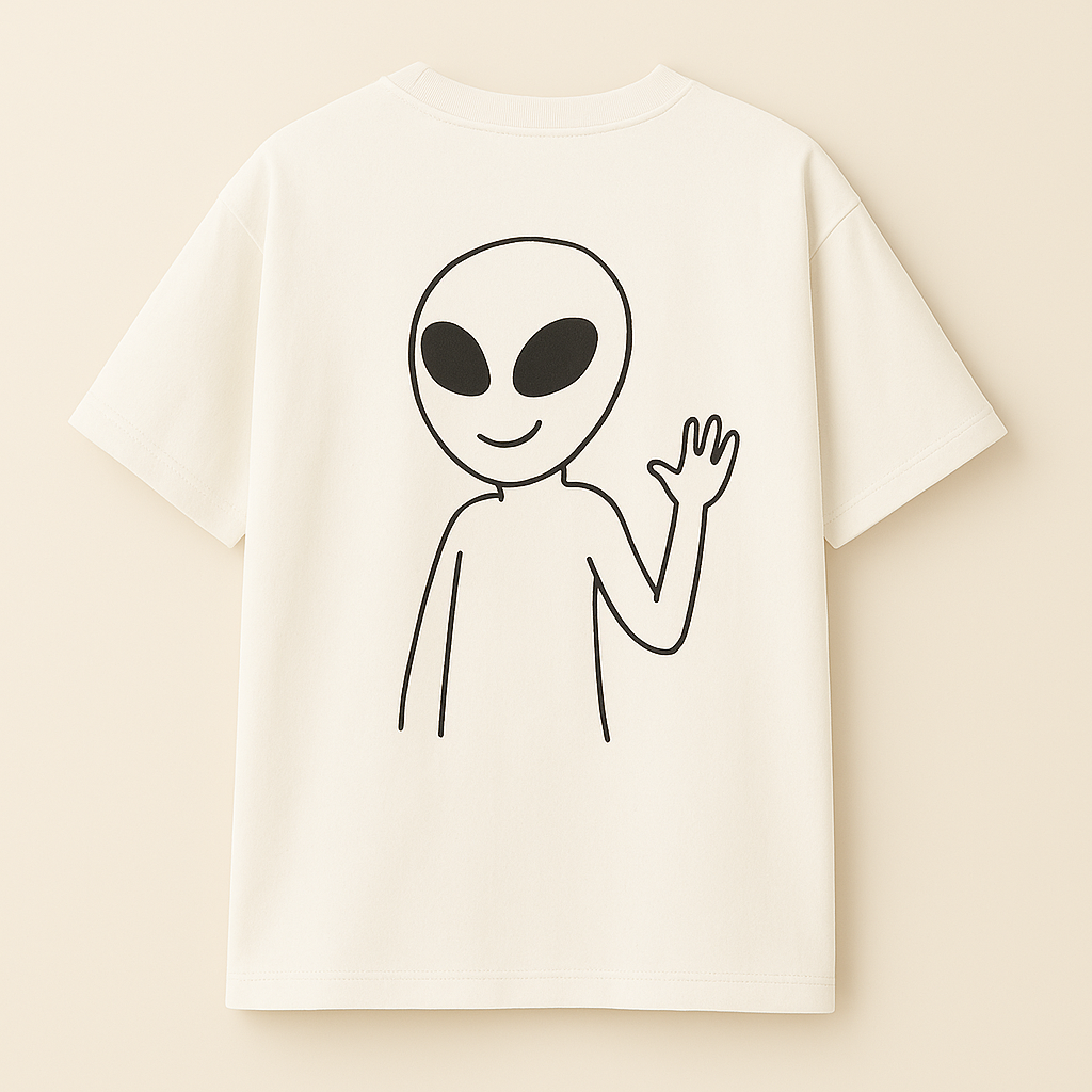 This oversized tee features the original Orbit77 alien design: a playful, mysterious figure that represents the soul of the podcast β multicultural, curious, weird, and unapologetically creative.